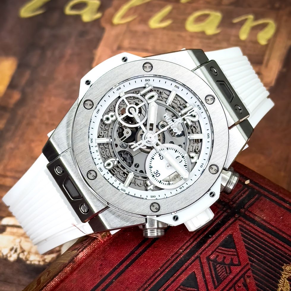 The Hublot Big Bang Unico 42mm reference 441.NE.2010.RW is a bold yet versatile statement piece, pairing a lightweight satin-finished titanium case with a striking skeletonized white dial that shows off the in-house Unico chronograph movement. Its flyback function, 72-hour power reserve, and 100m water resistance make it as capable as it is eye-catching, while the structured white rubber strap keeps the look sporty and modern. Perfect for anyone who wants the technical edge of an open-worked chronograph with the everyday wearability of titanium and Hublot’s unmistakable Big Bang design.