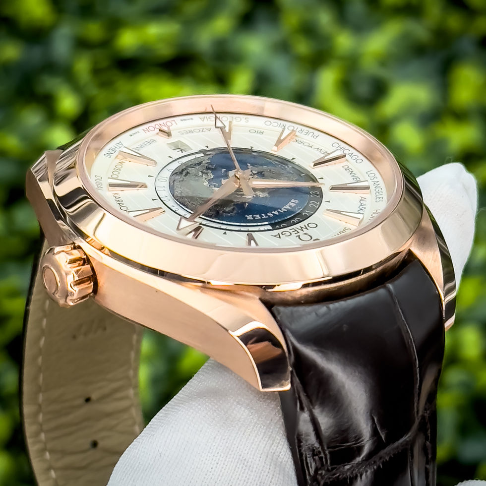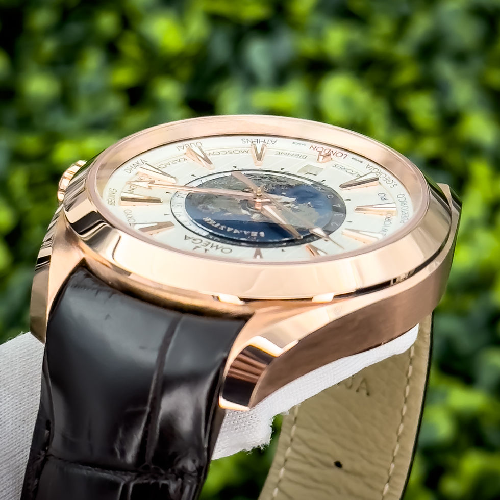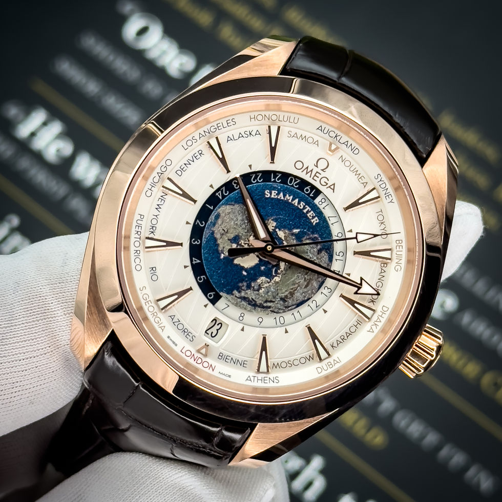 Beneath its refined exterior lies the Co-Axial Master Chronometer Caliber 8939, offering exceptional precision, a 60-hour power reserve, and magnetic resistance up to 15,000 gauss. The blue alligator leather strap complements the warmth of the rose gold case, making it both sophisticated and comfortable for everyday wear. Whether you’re closing deals in New York or unwinding in the Maldives, the Aqua Terra Worldtimer is more than just a watch—it’s a statement of a life well-traveled.