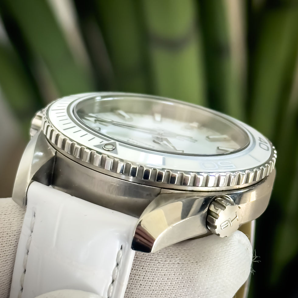 There’s something undeniably sleek about the Omega Seamaster Planet Ocean 232.30.42.21.04.001—the way its crisp white dial seamlessly complements the white ceramic bezel, creating a clean yet commanding presence on the wrist. Designed for those who embrace both adventure and refinement, this 42mm dive watch isn’t just about aesthetics; it’s a powerhouse of precision and durability. Whether you’re exploring ocean depths or navigating city streets, this timepiece embodies confidence, innovation, and timeless style.