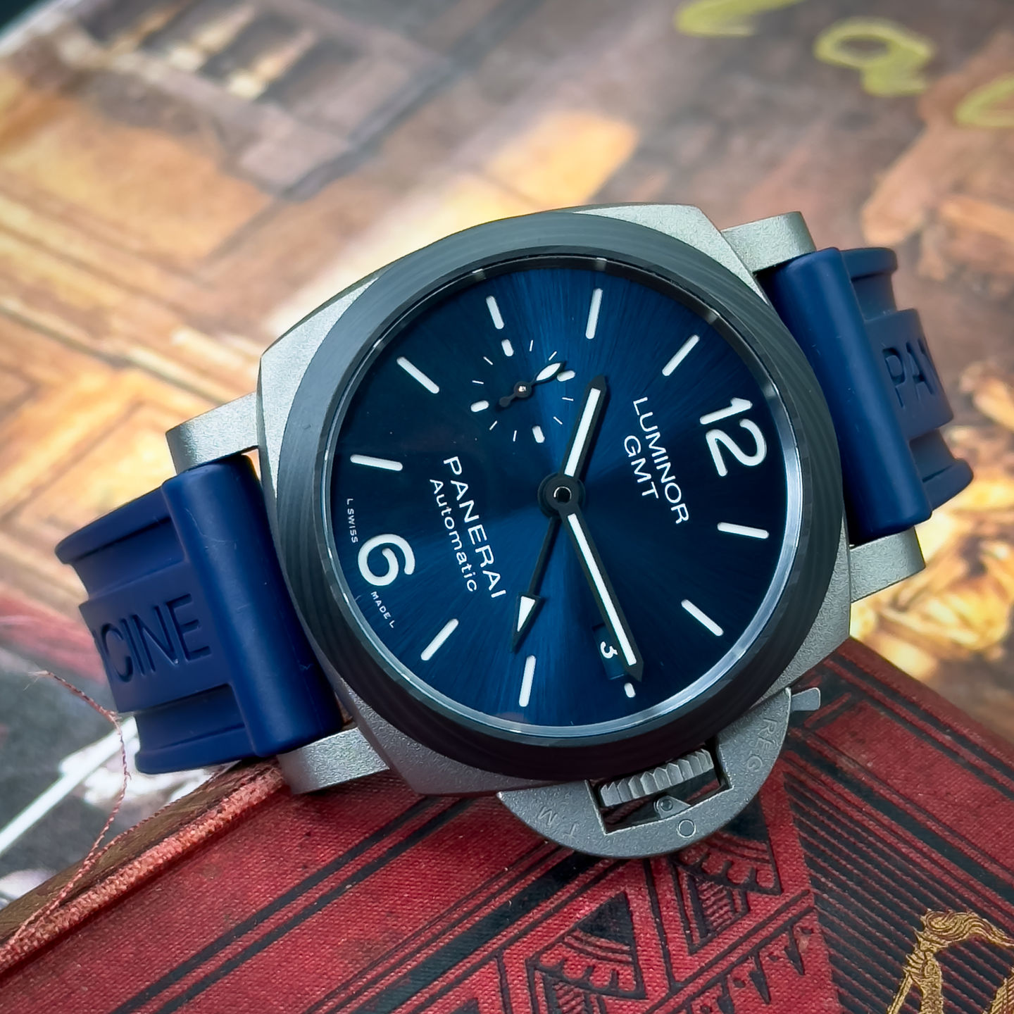 Panerai Luminor GMT Blue Dial 42mm Titanium Case w/Carbotech PAM01279 PAM 1279